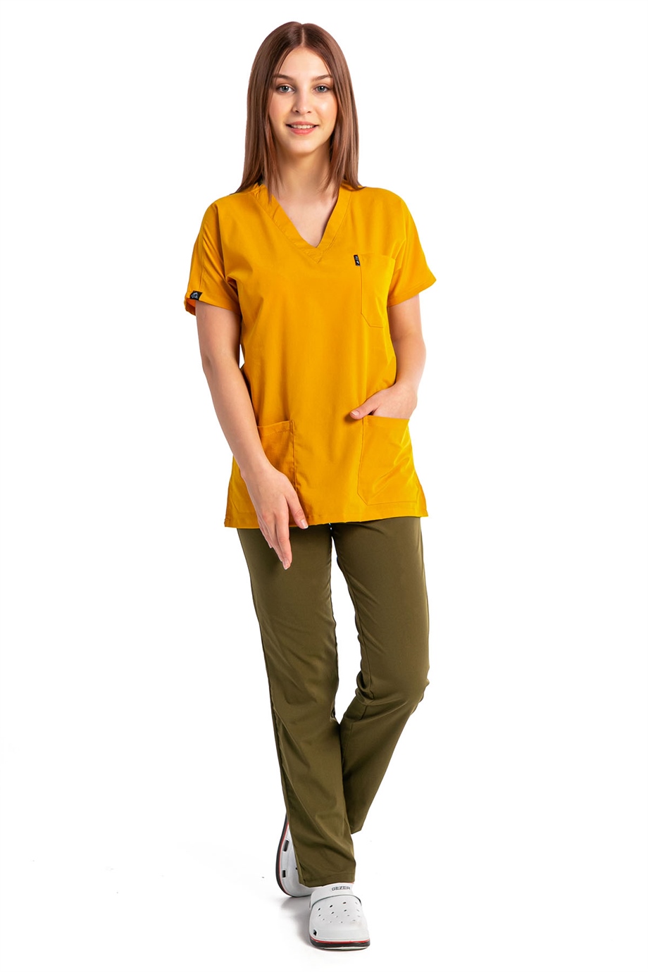 UltraLycra Harmony/Basic - Likralı Doktor Hemşire Forma Takımı, Safran/Haki (1ACATI1501916)