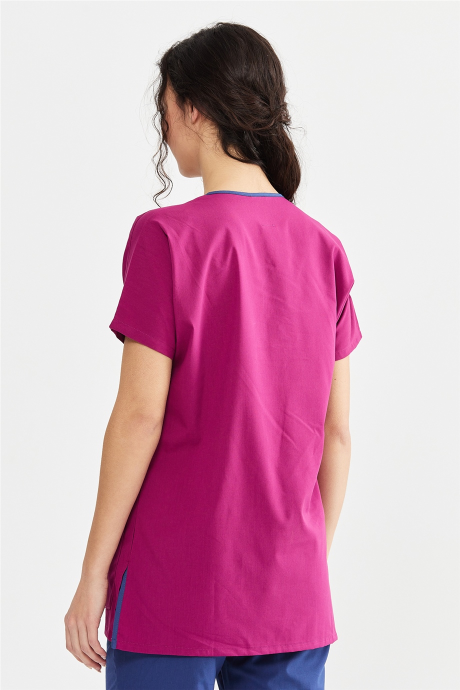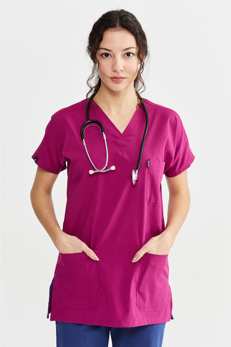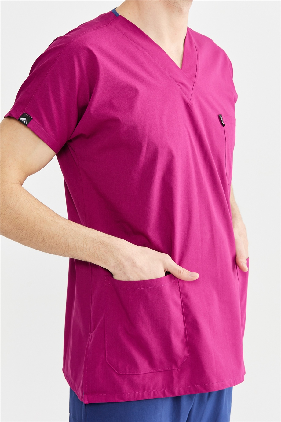 UltraLycra Harmony/Basic - Likralı Doktor Hemşire Forma Takımı Scrubs Üniforma Cerrahi Takım (UNISEX), Vişne/Fırtına Mavi (CATI1501820)