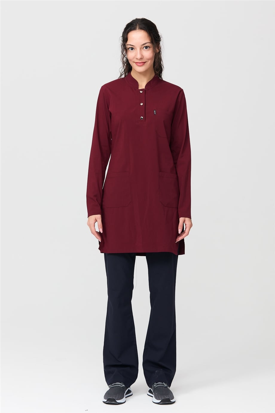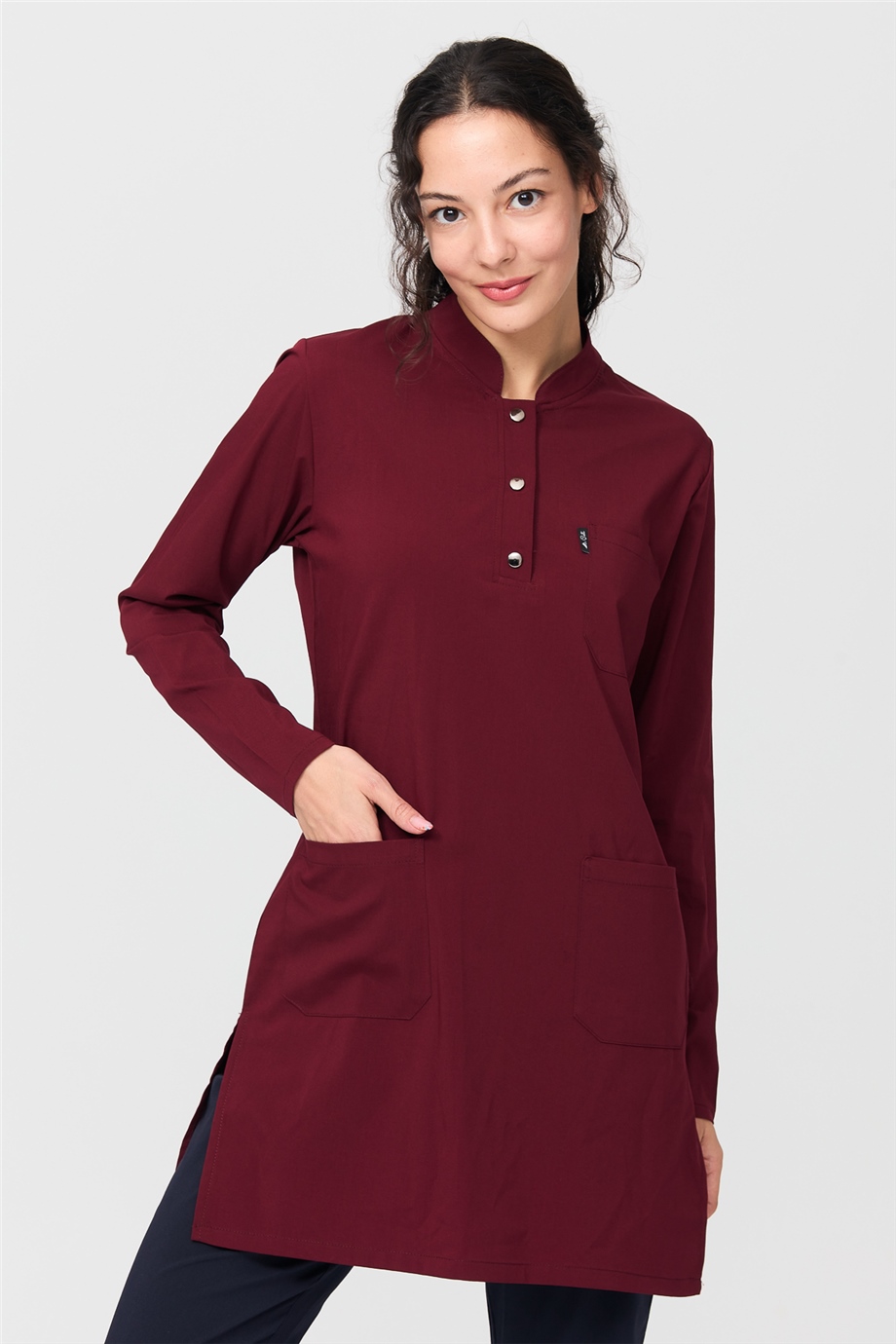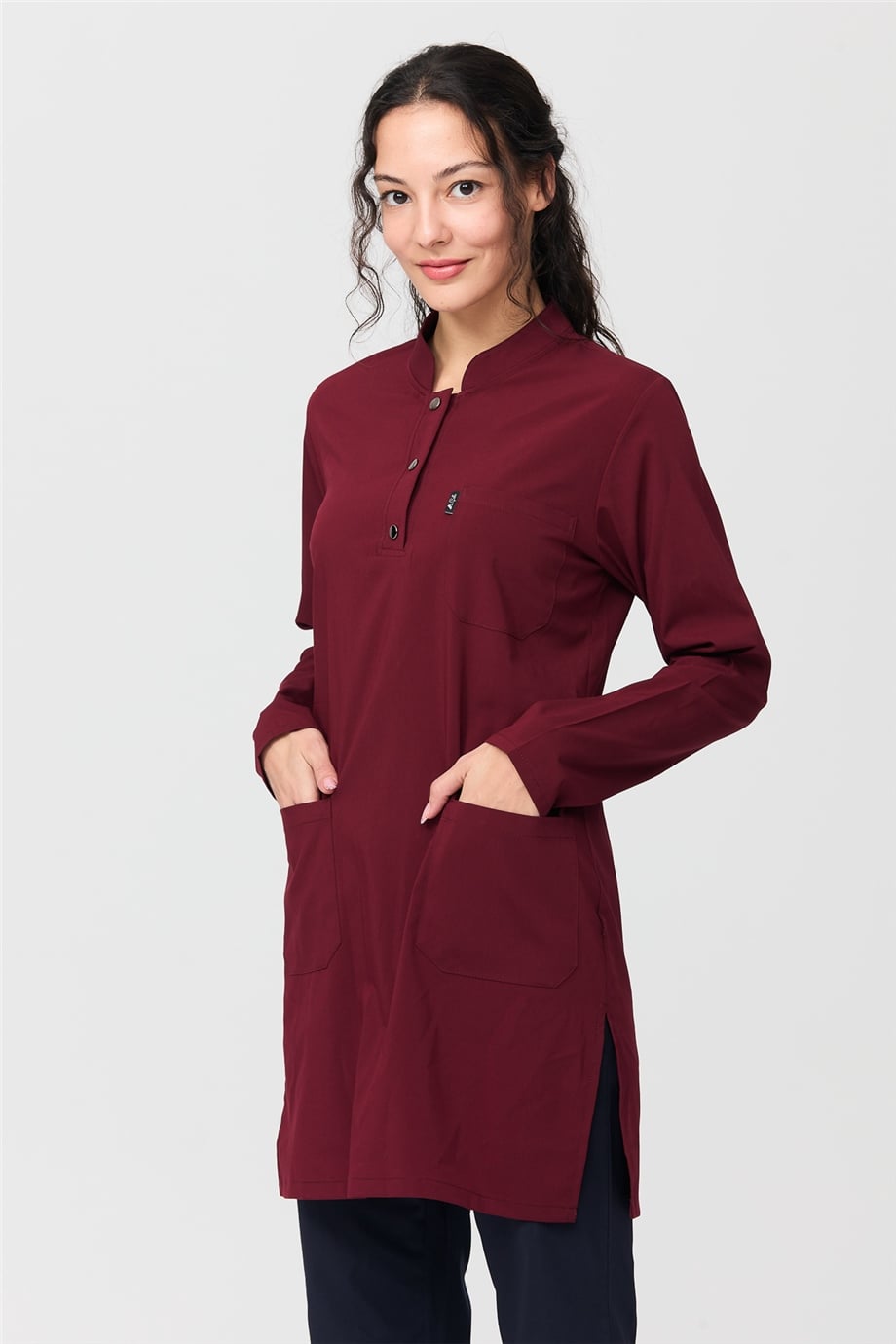 UltraLycra Harmony/Modest - Likralı Doktor Hemşire Tesettür Forma Takımı Scrubs Üniforma Cerrahi Takım, Bordo/Laci (CATI1200803)