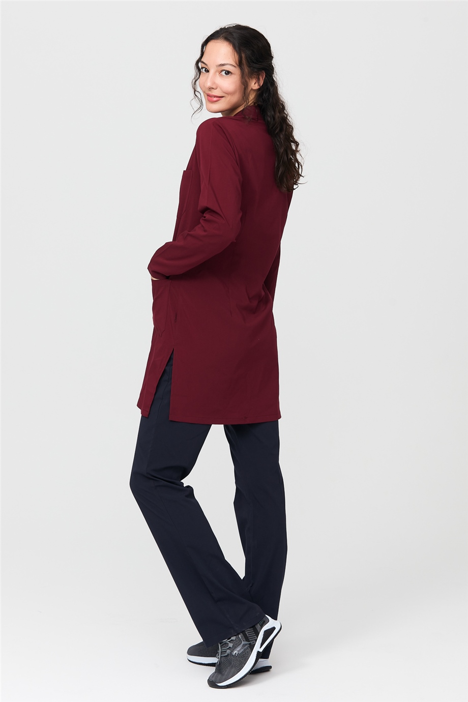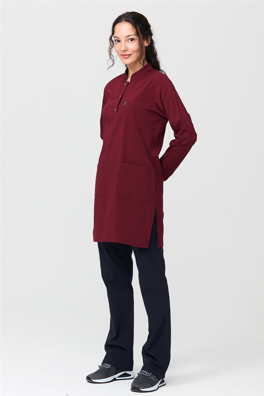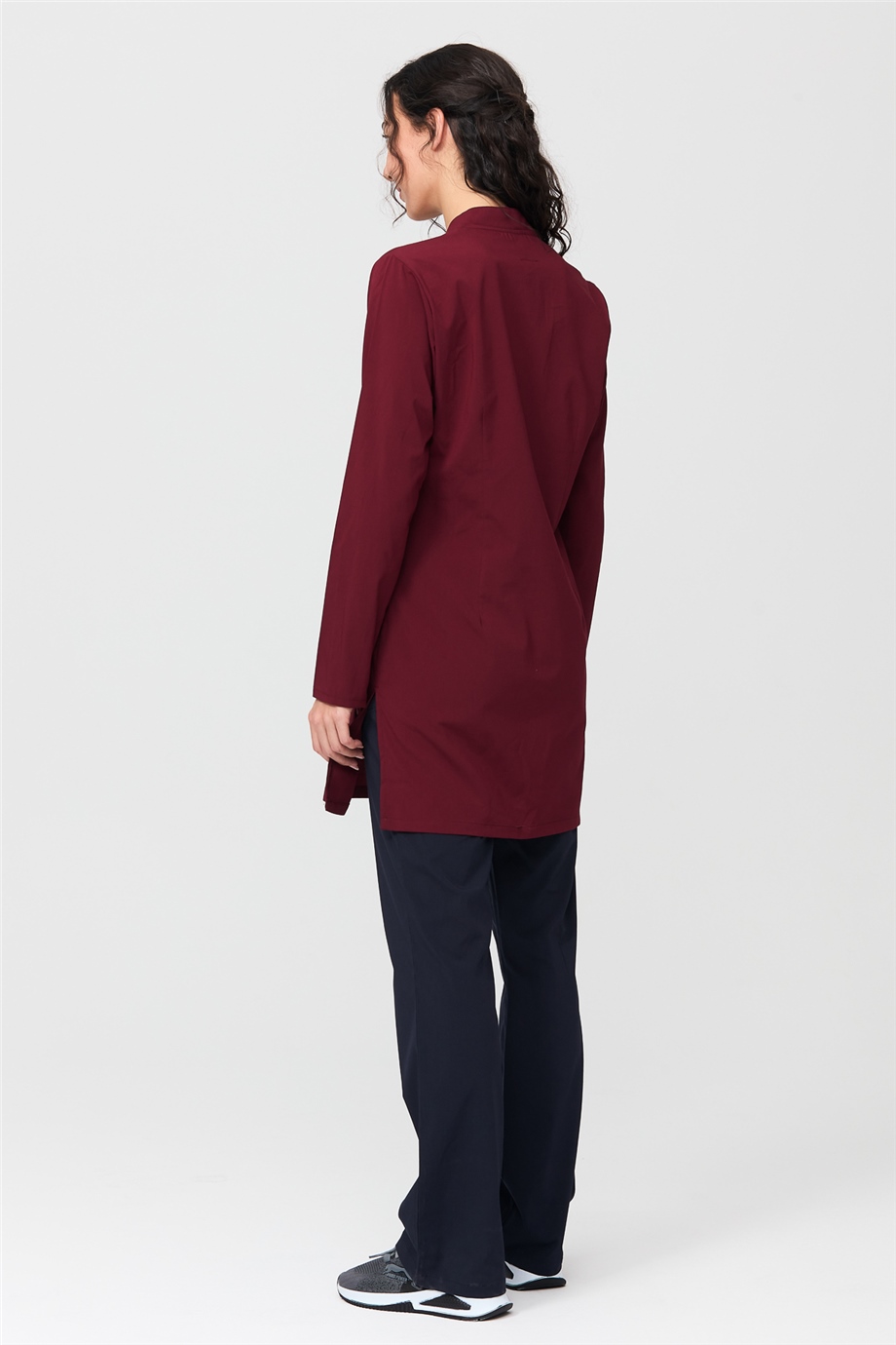 UltraLycra Harmony/Modest - Likralı Doktor Hemşire Tesettür Forma Takımı Scrubs Üniforma Cerrahi Takım, Bordo/Laci (CATI1200803)