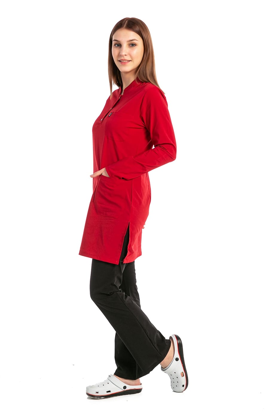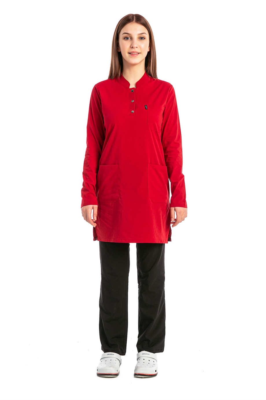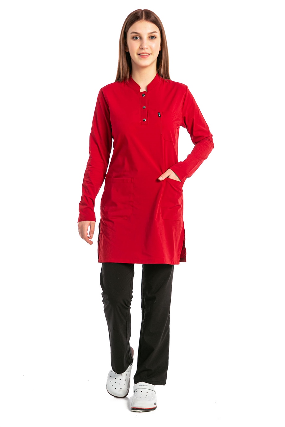 UltraLycra Harmony/Modest - Likralı Doktor Hemşire Tesettür Forma Takımı, Kırmızı/Siyah (1ACATI1200602)