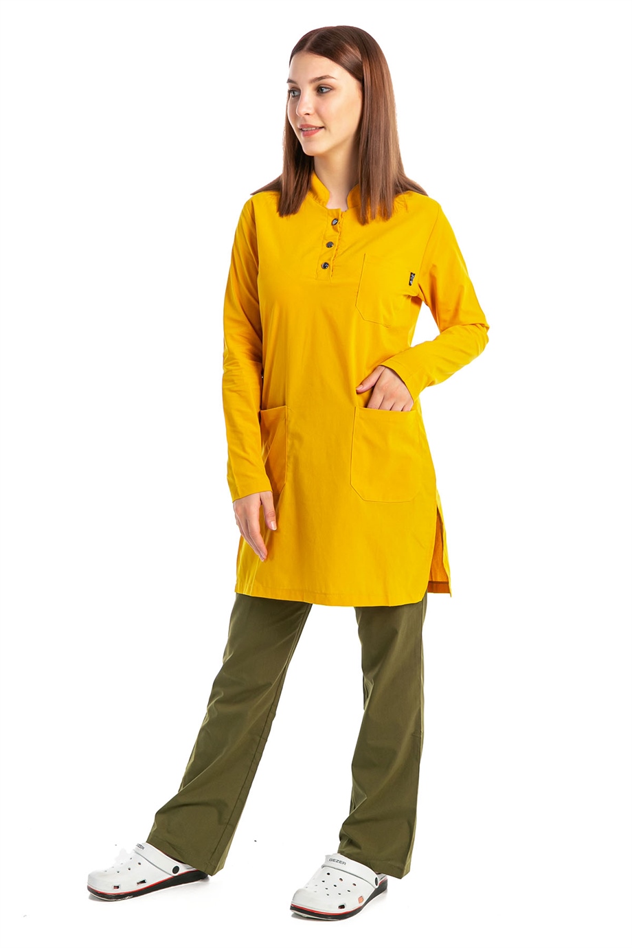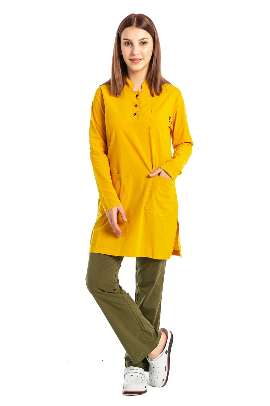 UltraLycra Harmony/Modest - Likralı Doktor Hemşire Tesettür Forma Takımı, Safran/Haki (1ACATI1201916)