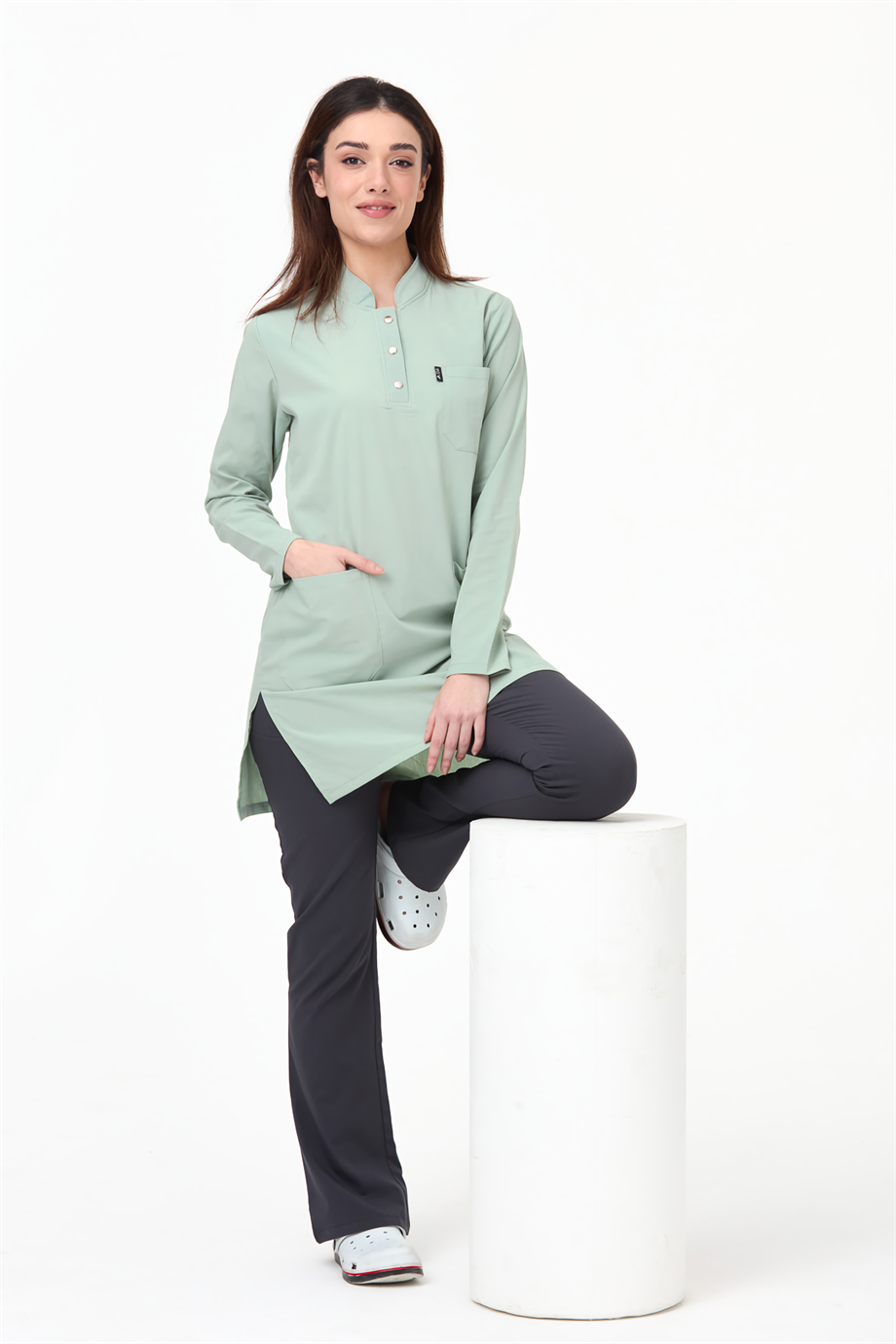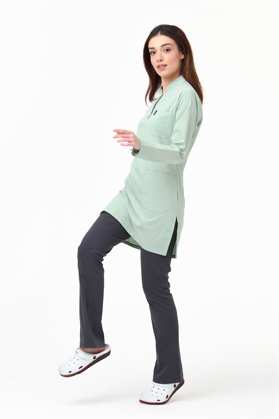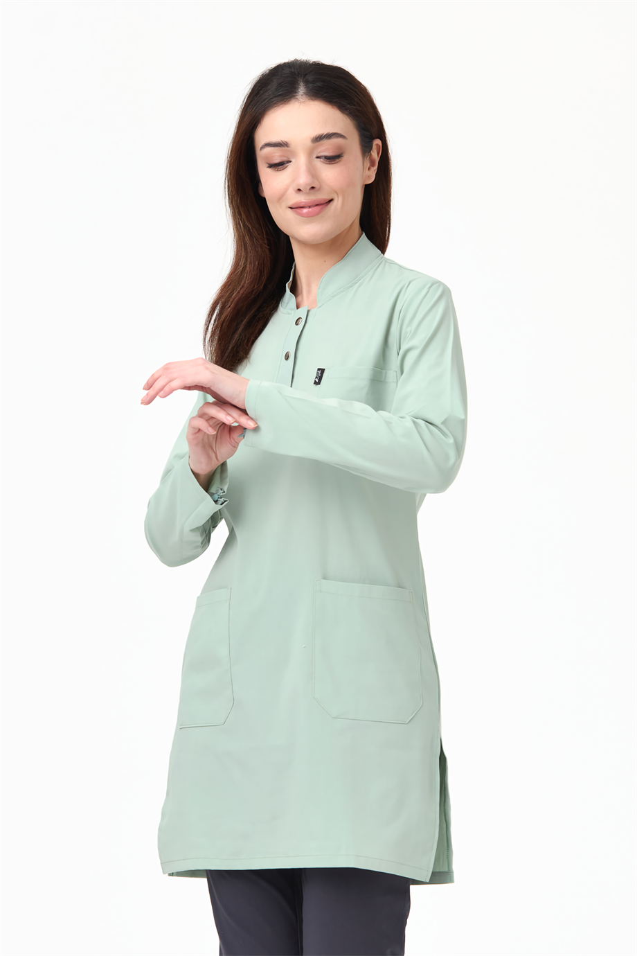 UltraLycra Harmony/Modest - Likralı Doktor Hemşire Tesettür Forma Takımı, Su Yeşili/Antrasit (1ACATI1202726)
