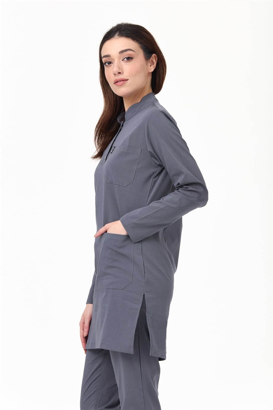 UltraLycra Modest - Likralı Doktor Hemşire Tesettür Forma Takımı Scrubs Üniforma Cerrahi Takım, Asfalt (CATI12025)