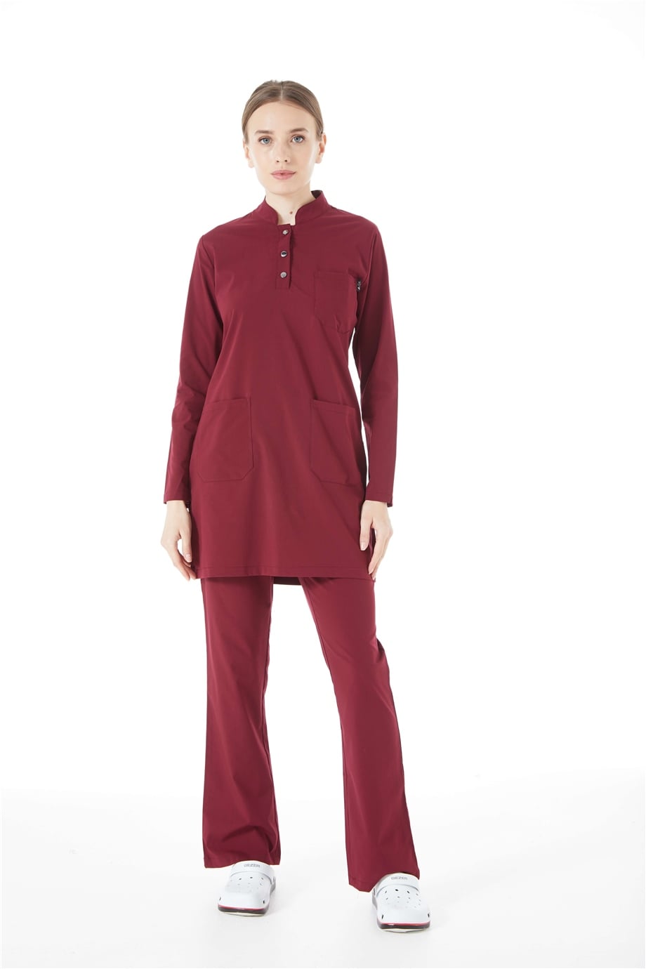 UltraLycra Modest - Likralı Doktor Hemşire Tesettür Forma Takımı, Bordo (1ACATI12008)