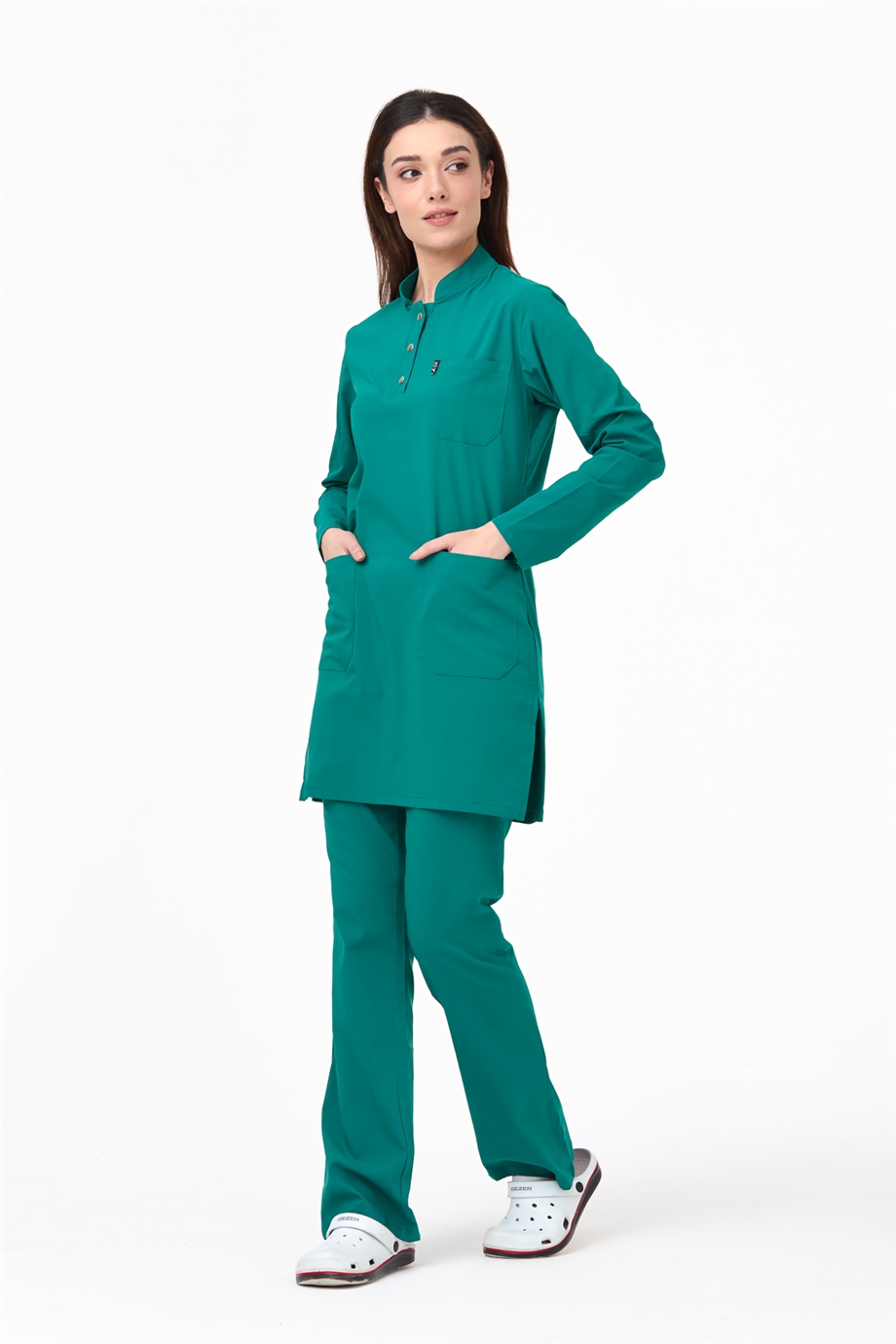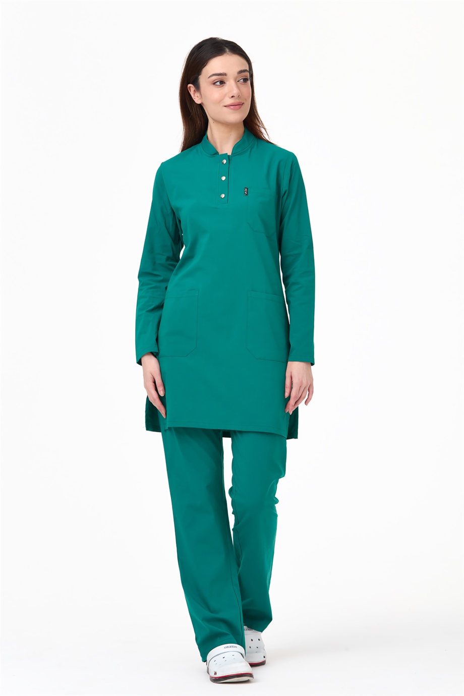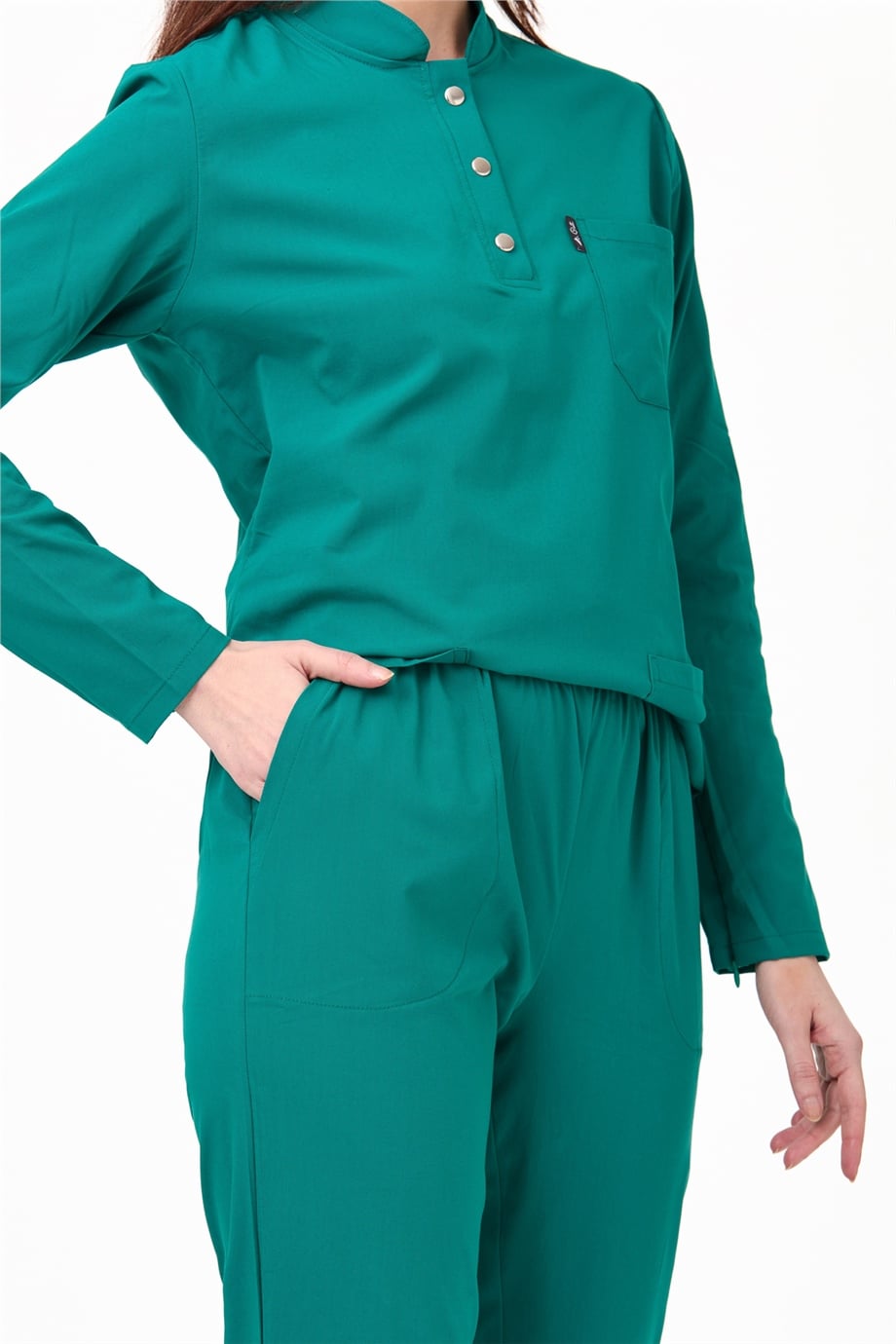 UltraLycra Modest - Likralı Doktor Hemşire Tesettür Forma Takımı Scrubs Üniforma Cerrahi Takım, Cerrahi Yeşil (CATI12007)