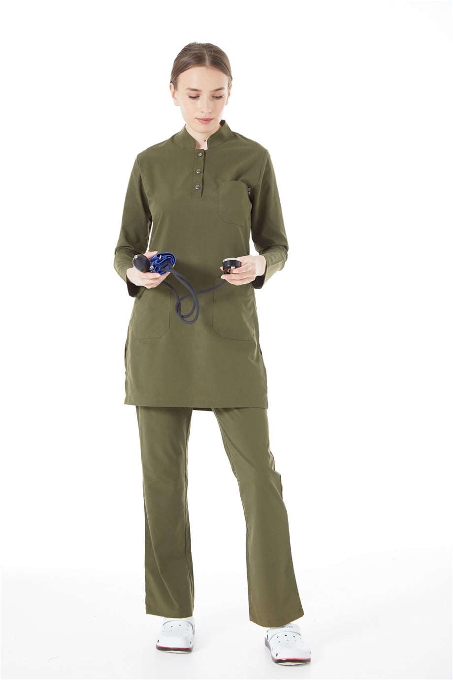 UltraLycra Modest - Likralı Doktor Hemşire Tesettür Forma Takımı, Haki (1ACATI12016)