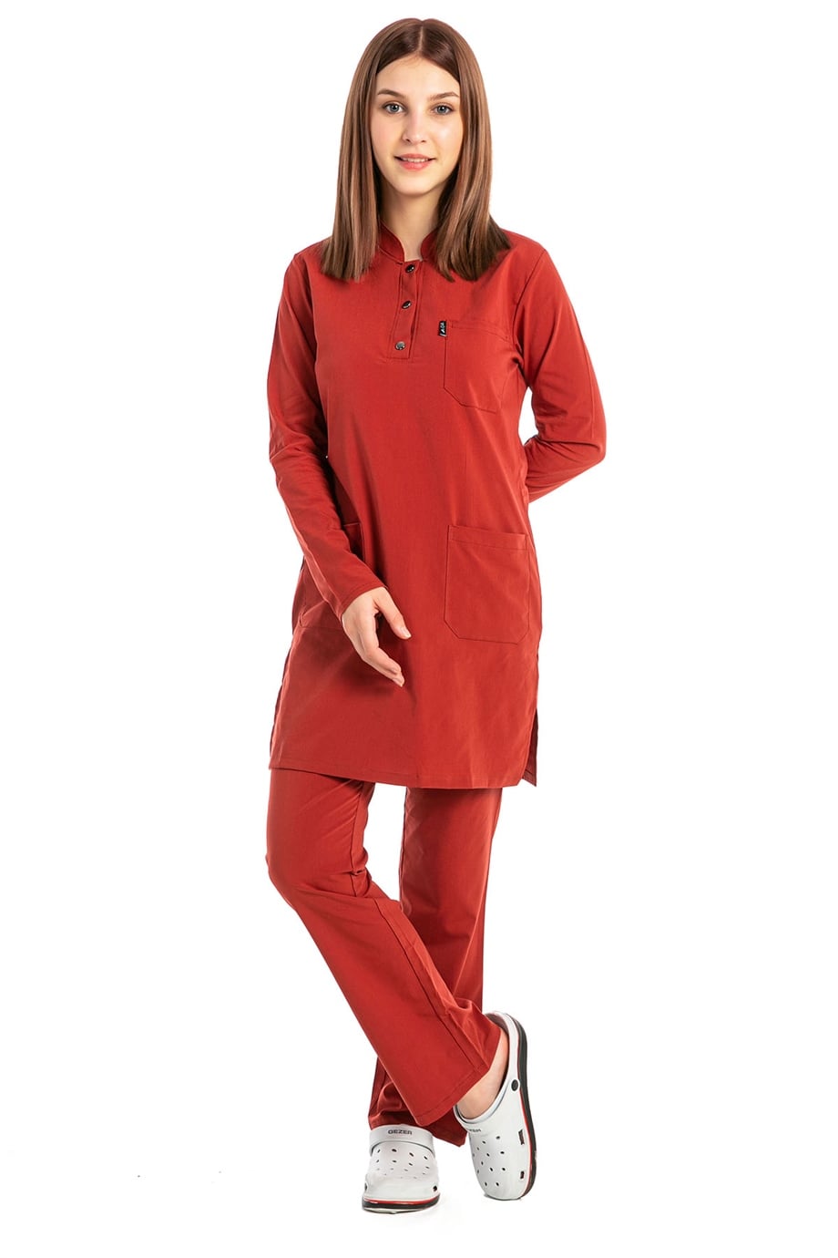 UltraLycra Modest - Likralı Doktor Hemşire Tesettür Forma Takımı, Kiremit (1ACATI12015)