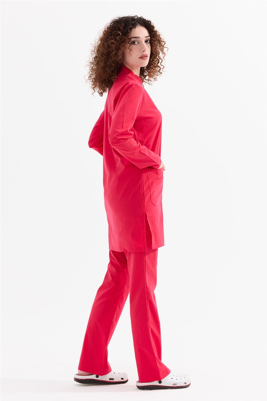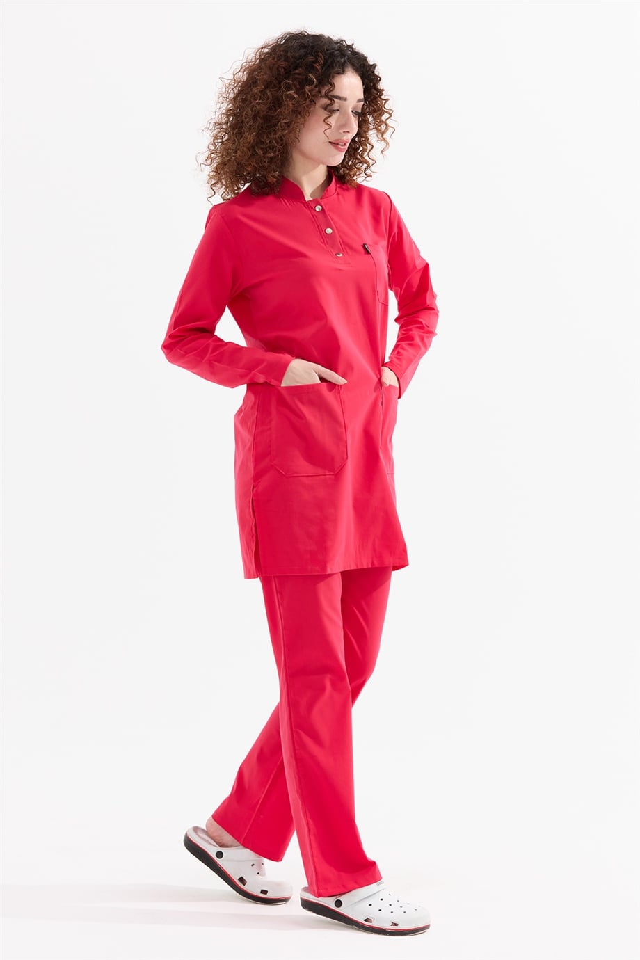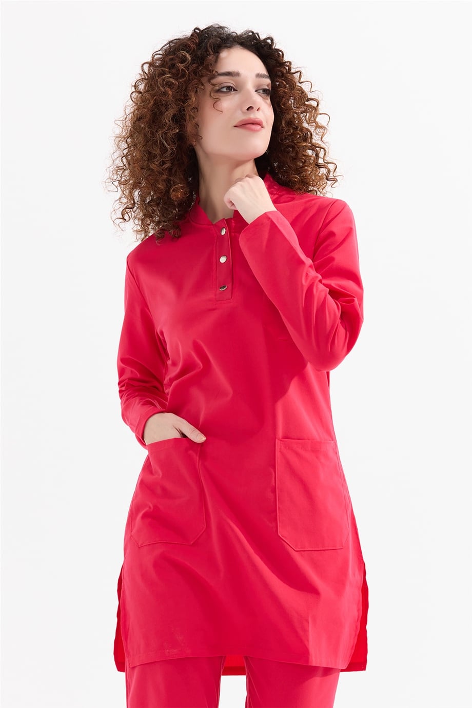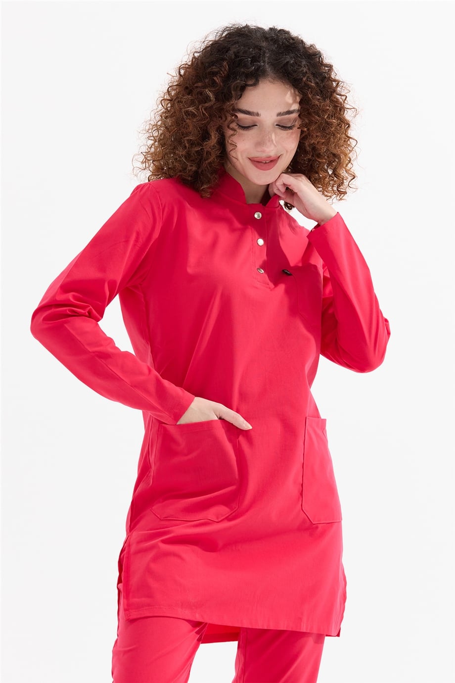 UltraLycra Modest - Likralı Doktor Hemşire Tesettür Forma Takımı Scrubs Üniforma Cerrahi Takım, Nar Çiçeği (CATI12022)