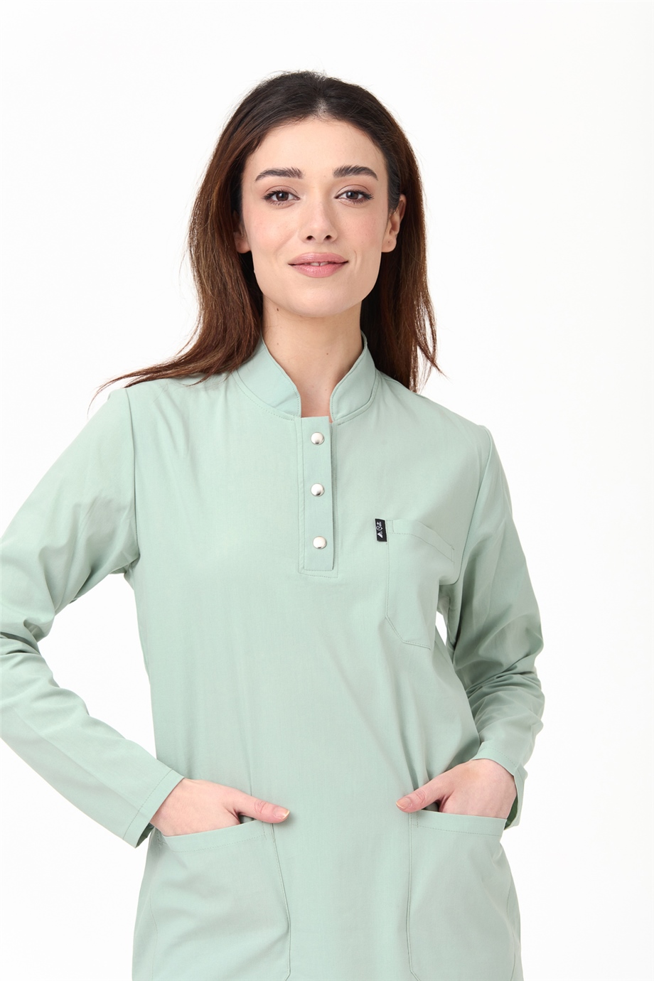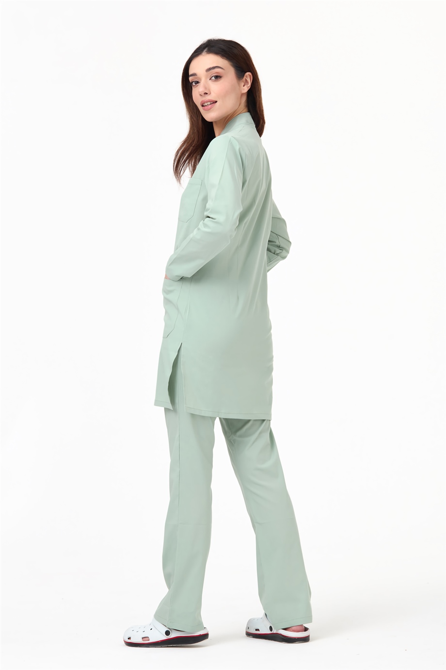 UltraLycra Modest - Likralı Doktor Hemşire Tesettür Forma Takımı Scrubs Üniforma Cerrahi Takım, Su Yeşili (CATI12027)