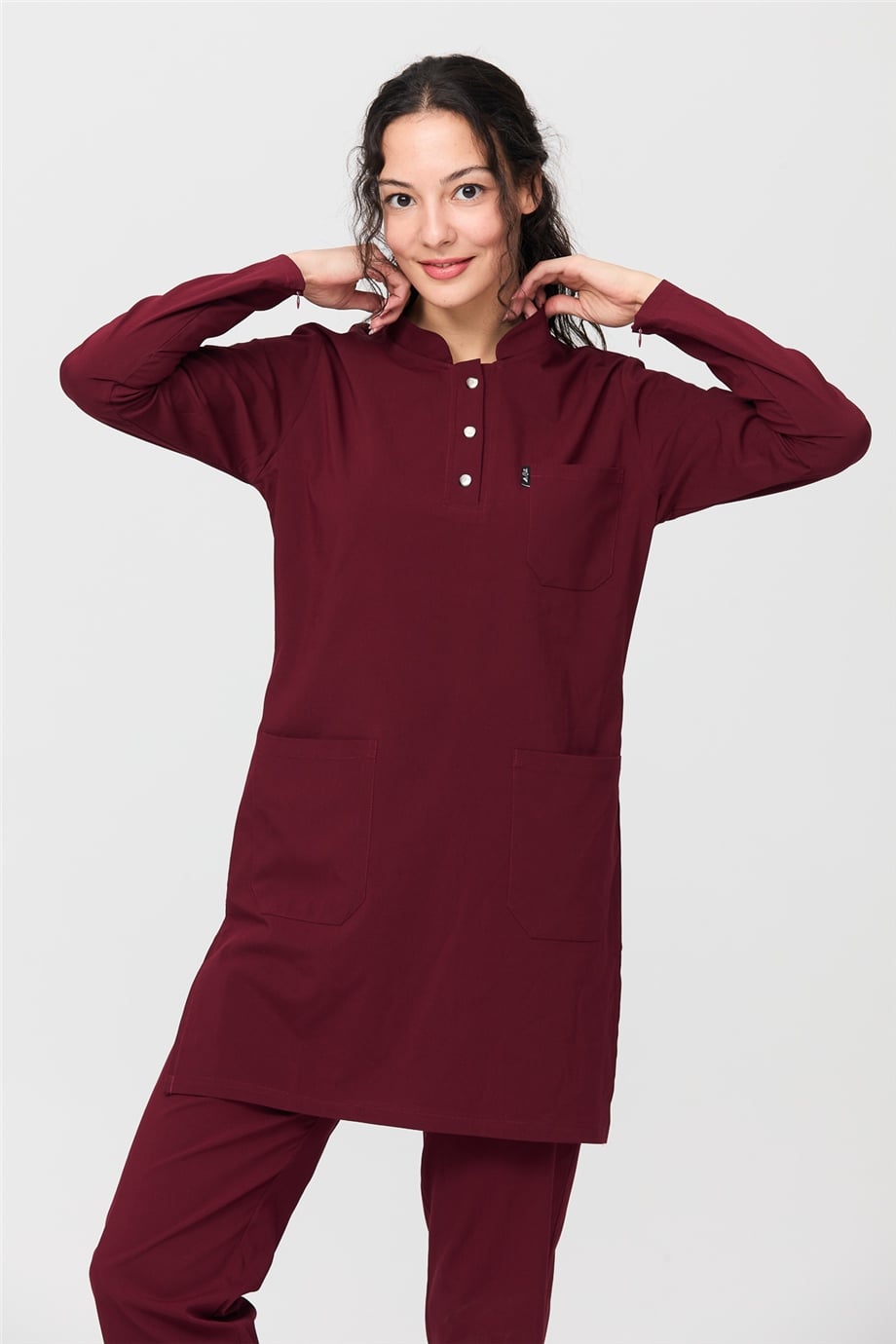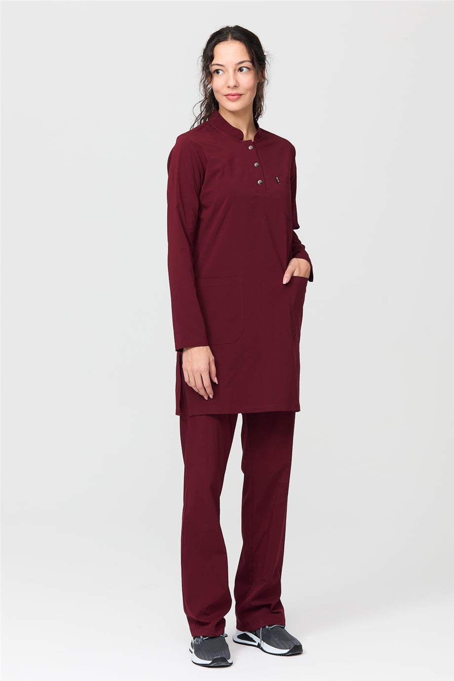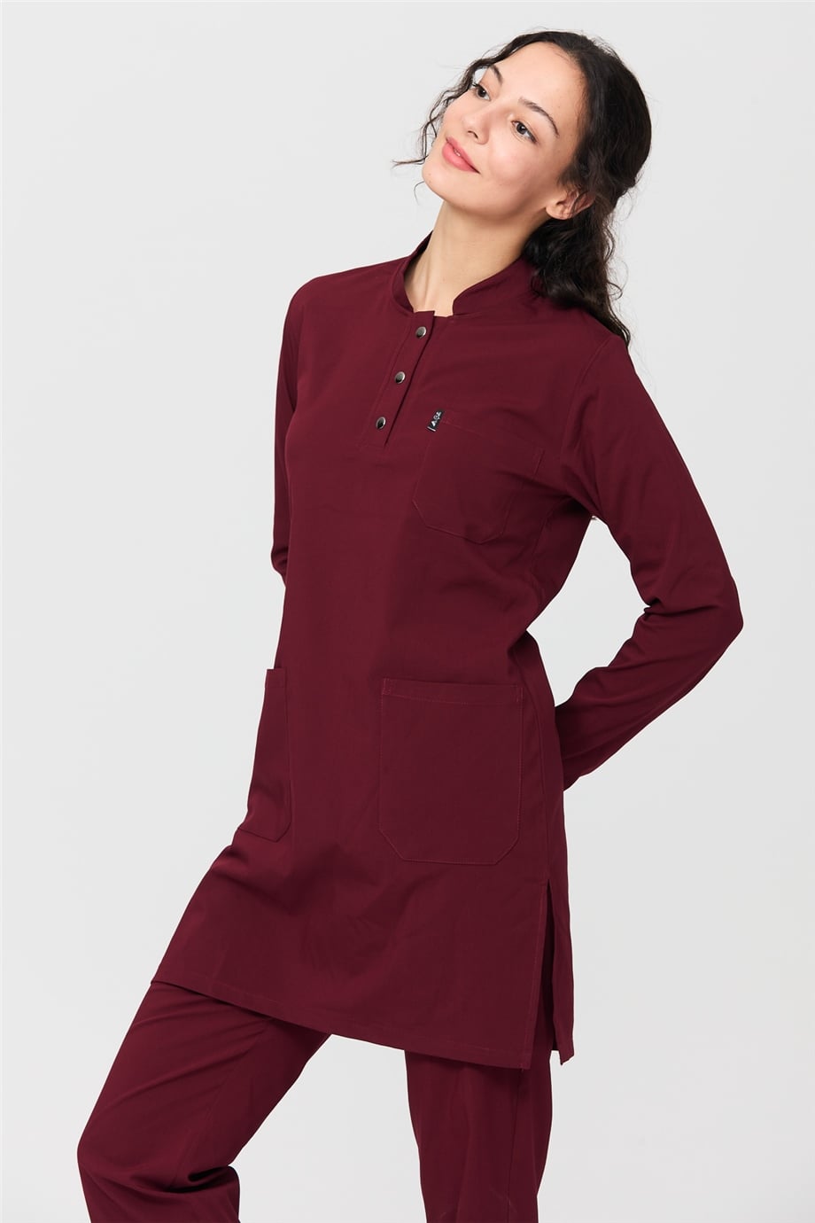 UltraLycra Modest - Likralı Doktor Hemşire Tesettür Forma Takımı Scrubs Üniforma Cerrahi Takım, Bordo (CATI12008)