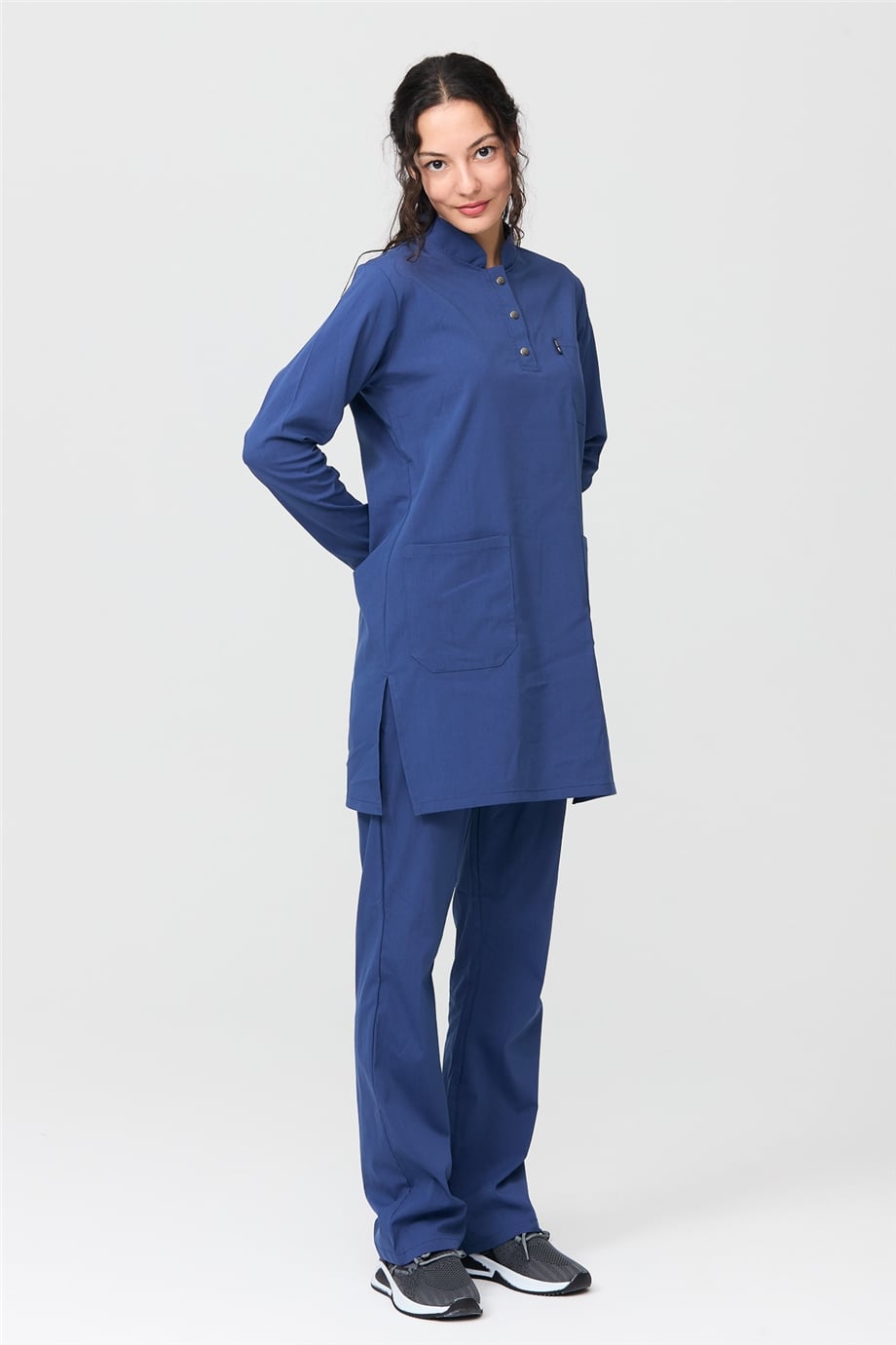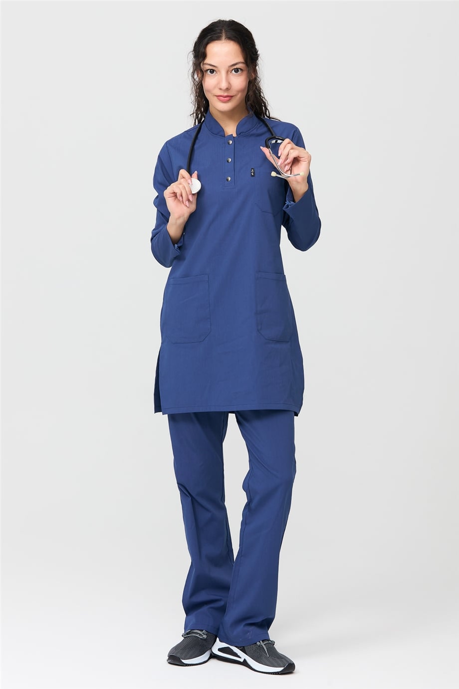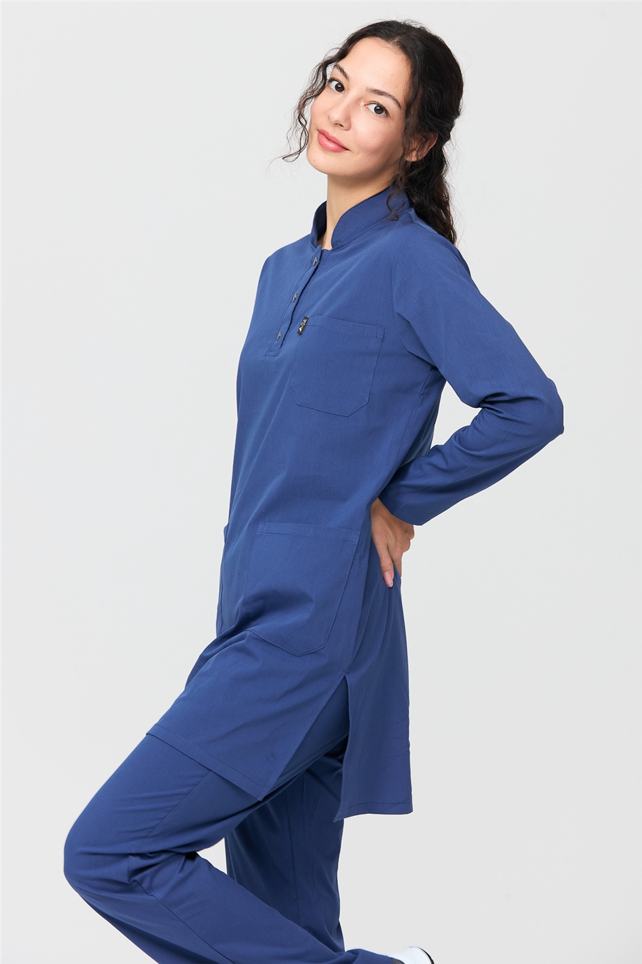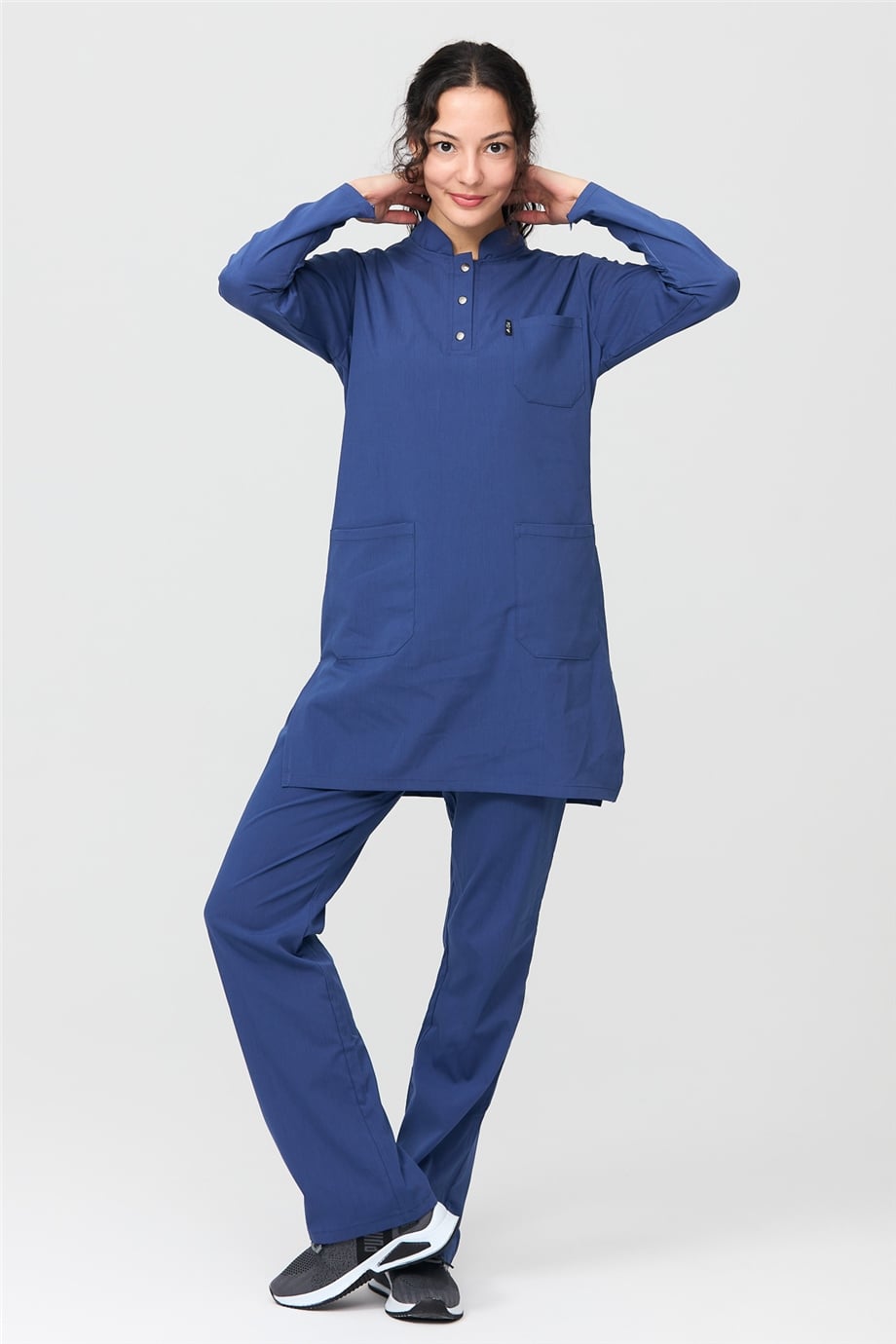 UltraLycra Modest - Likralı Doktor Hemşire Tesettür Forma Takımı Scrubs Üniforma Cerrahi Takım, Fırtına Mavi (CATI12020)