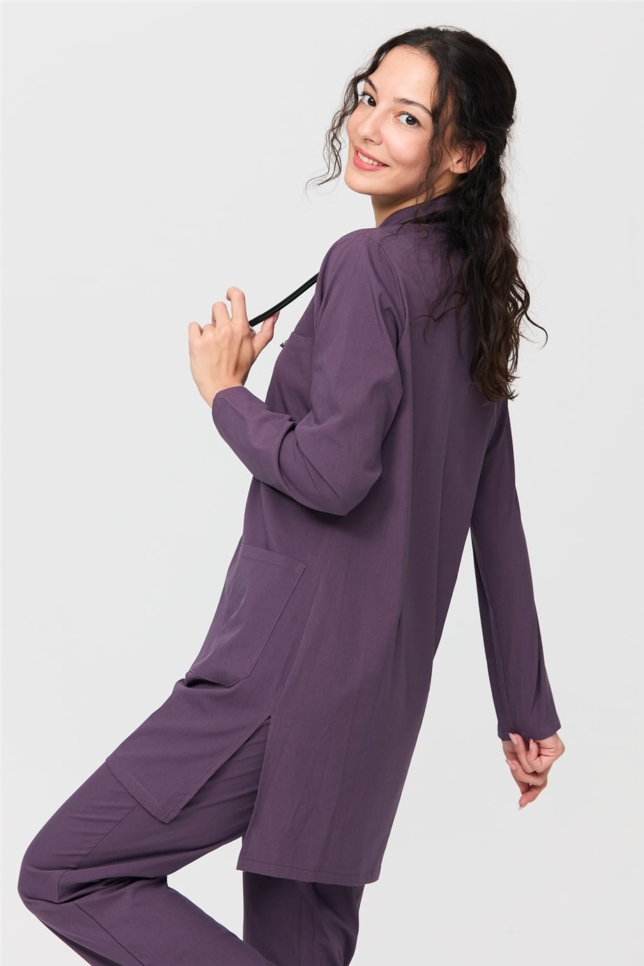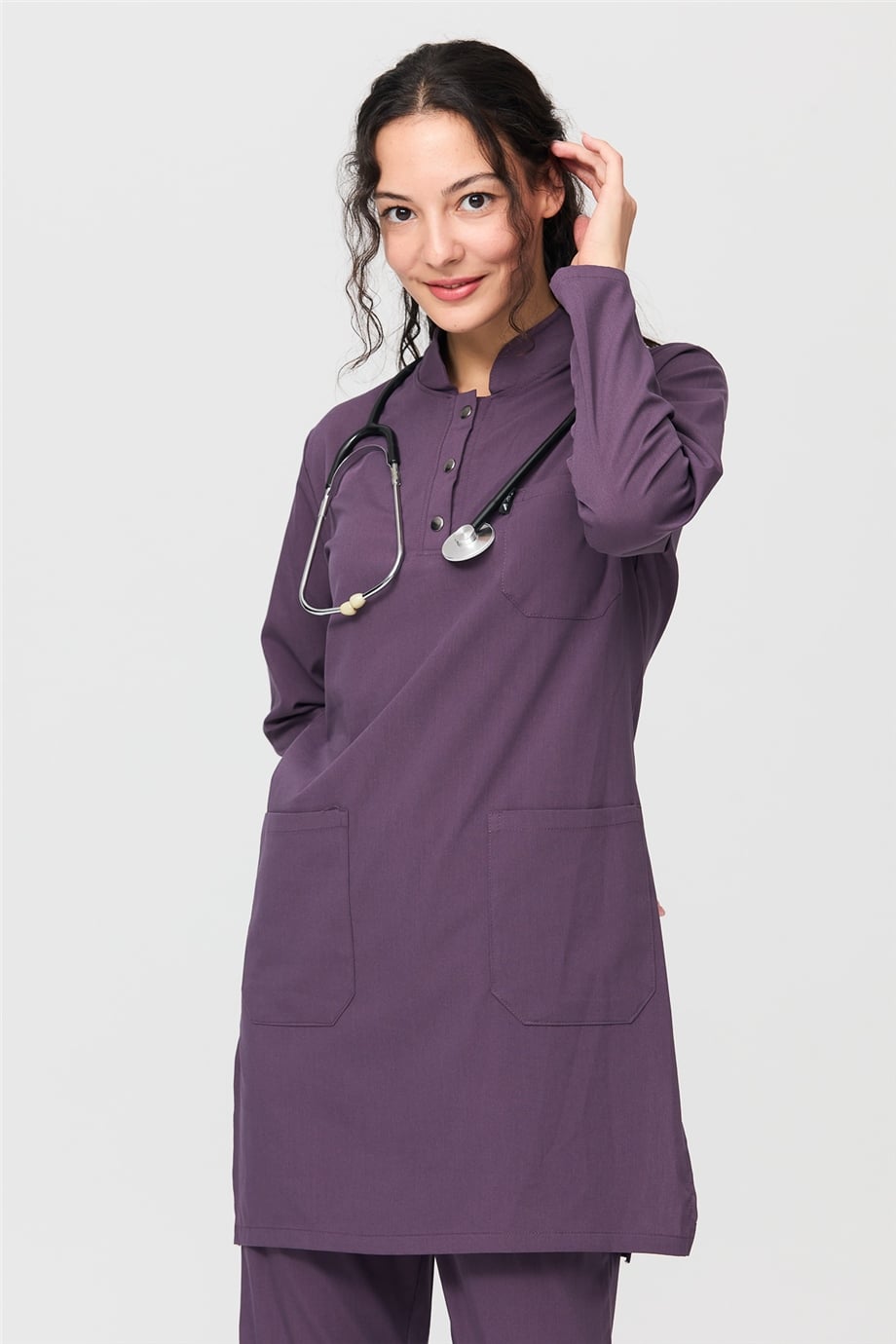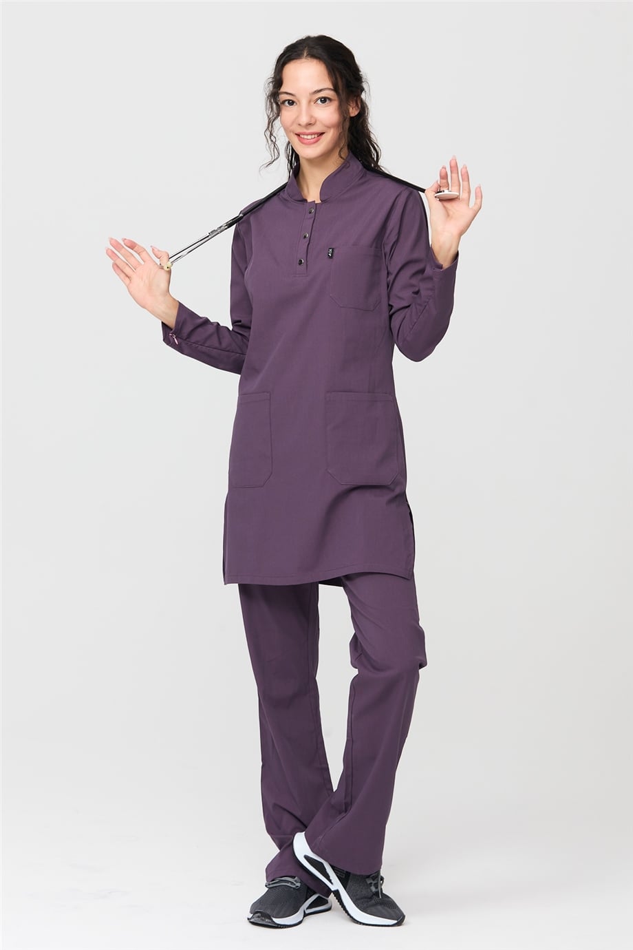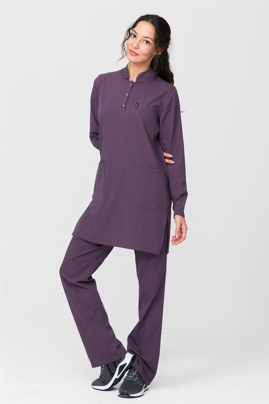 UltraLycra Modest - Likralı Doktor Hemşire Tesettür Forma Takımı Scrubs Üniforma Cerrahi Takım, Gül Kurusu (CATI12014)
