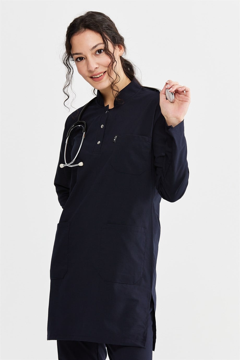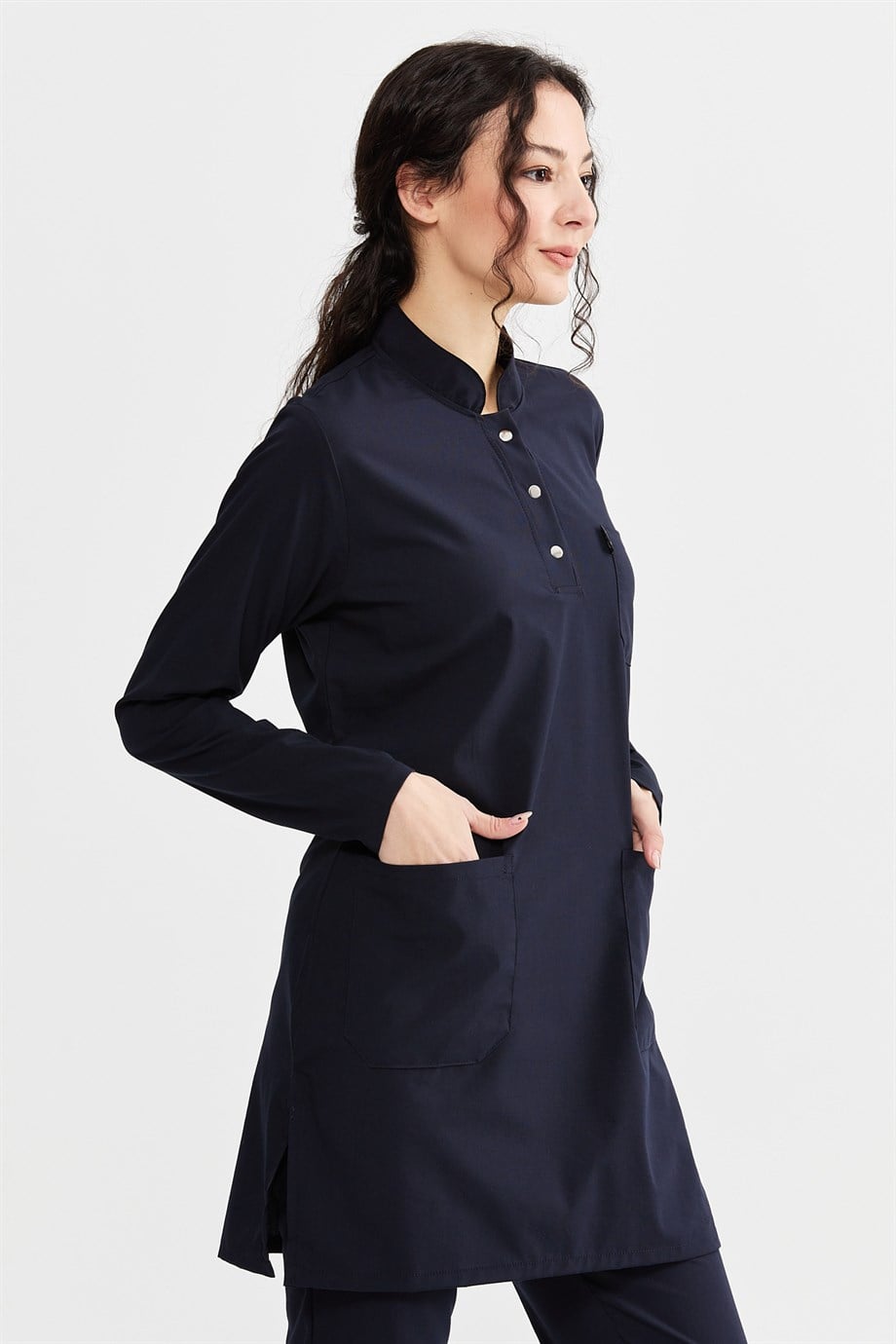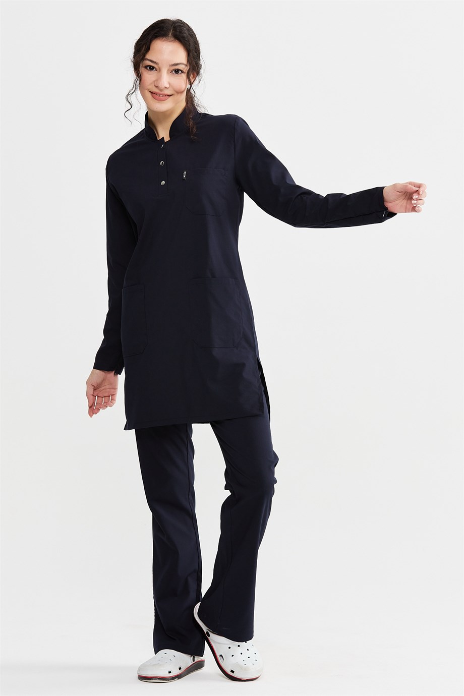 UltraLycra Modest - Likralı Doktor Hemşire Tesettür Forma Takımı Scrubs Üniforma Cerrahi Takım, Lacivert (CATI12003)