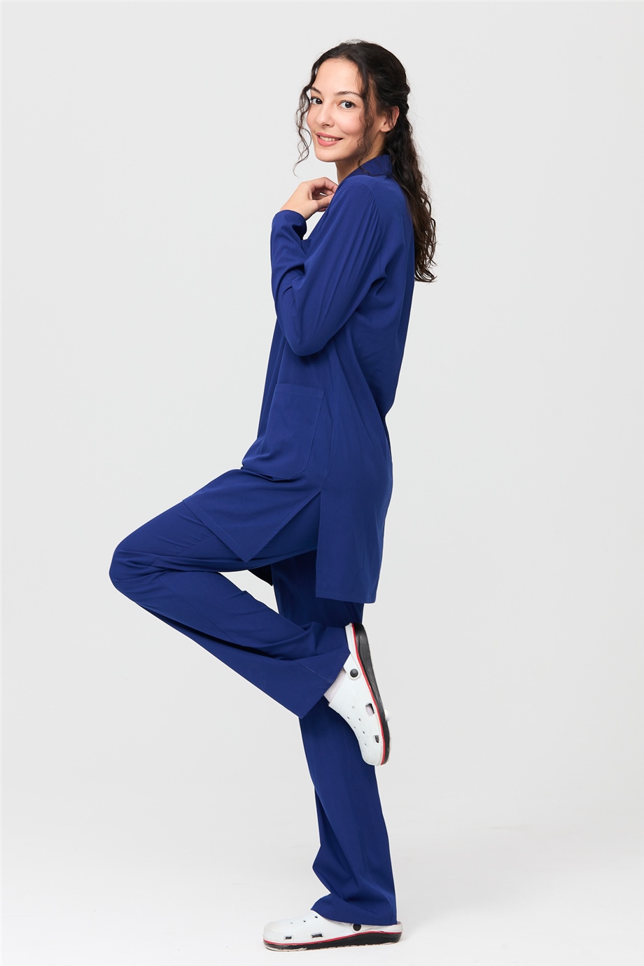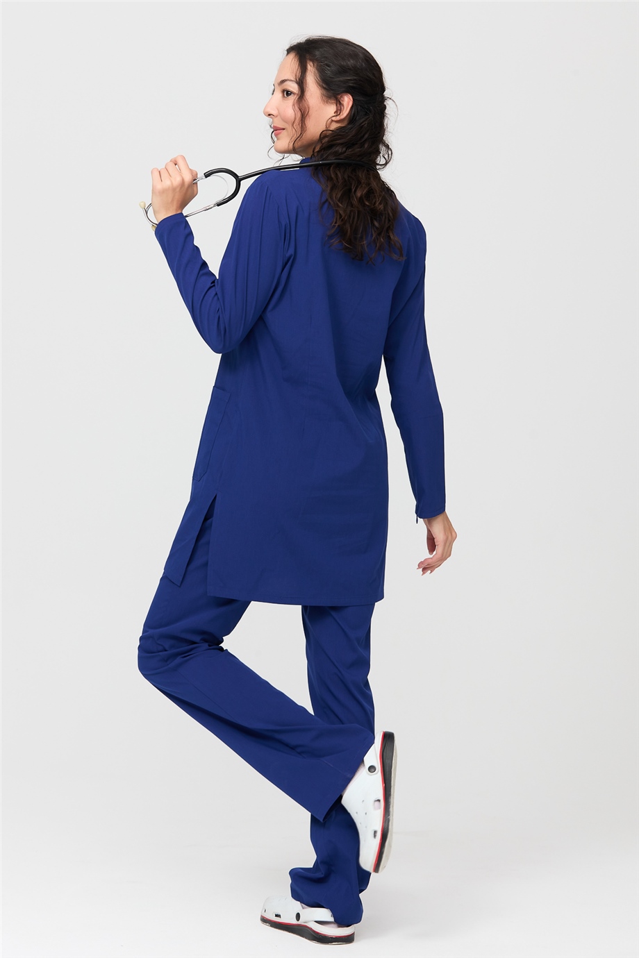 UltraLycra Modest - Likralı Doktor Hemşire Tesettür Forma Takımı Scrubs Üniforma Cerrahi Takım, Saks (CATI12013)